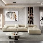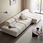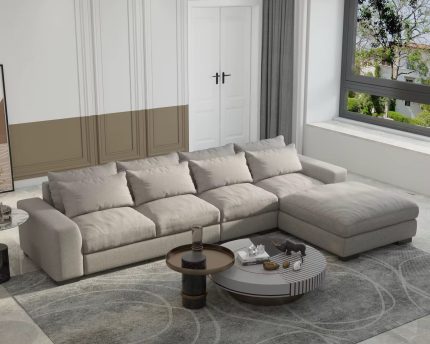 ركنه حرف L خشب زان قماش من الكتان القطني